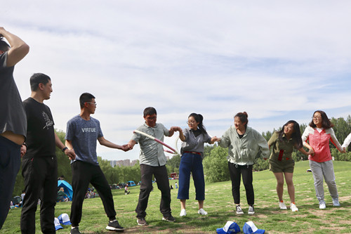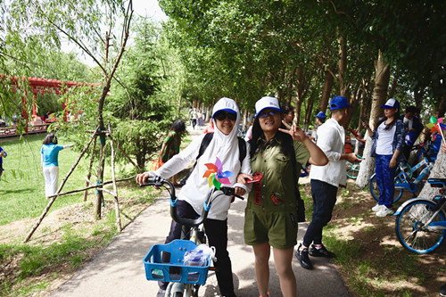 大家從奧林匹克公園進(jìn)入騎行約7公里后在集合地點(diǎn)野餐、游戲......